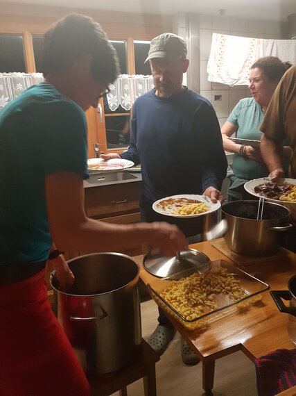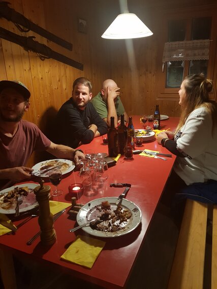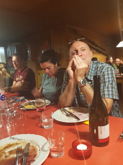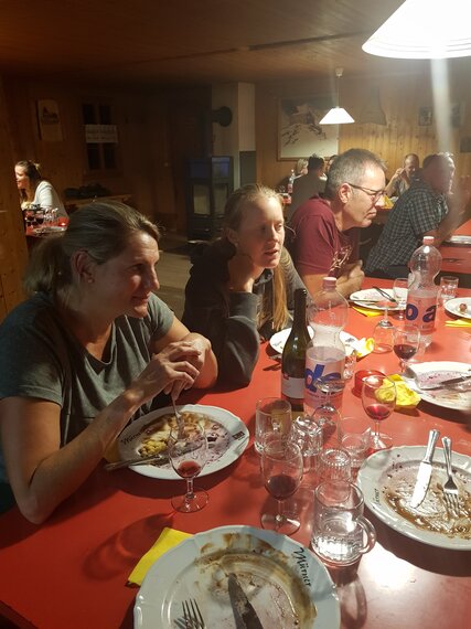Nach einer hervorragenden Kürbissuppe gab es einen feinen Salat gefolgt von dem Hauptgericht (Teller) sowie einem selbstgemachten Dessertbuffet. Es war einfach super!
